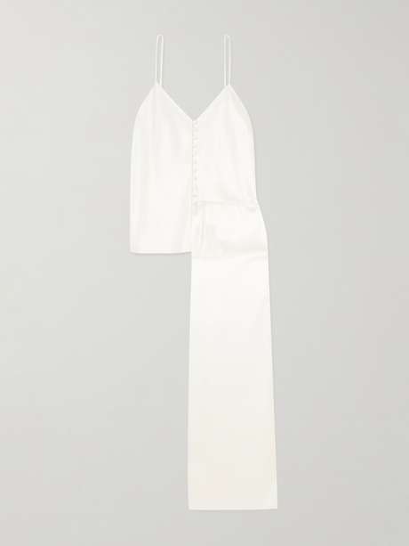 Olivia von Halle's 'Blair' pajamas have a gorgeous ivory glow. Soft and fluid, they're made from silk-satin with antique-inspired covered buttons down the camisole.