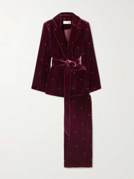 EXCLUSIVE AT NET-A-PORTER. Olivia von Halle describes its 'Jagger' set as "the perfect cocktail pajama" - few things are more elegant or more comfortable when hosting. Embellished with crystals, they're made from fluid velvet that drapes beautifully. Dress up the belted shirt and wide-leg pants with strappy heels and a clutch if you're heading out.