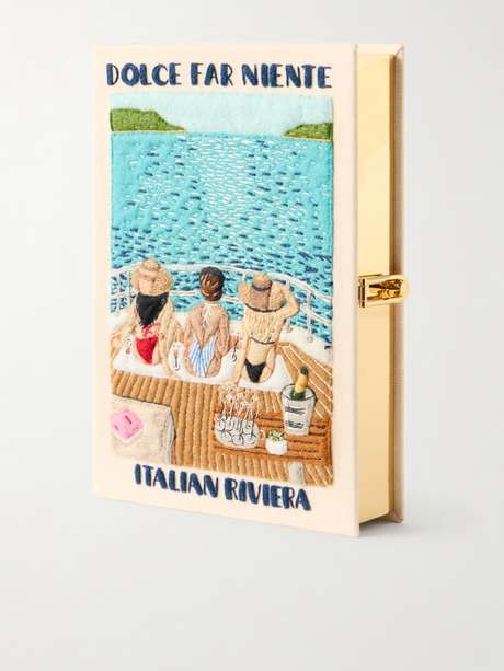 Olympia Le-Tan’s clutch celebrates the art of doing nothing through its signature storytelling design. Crafted from canvas, this ‘Dolce Far Niente’ style is intricately embroidered and appliquéd with whimsical lettering and motifs that evoke leisurely Italian summers. It’s lined in Liberty® floral print and fits your phone, cardholder and lipstick.
