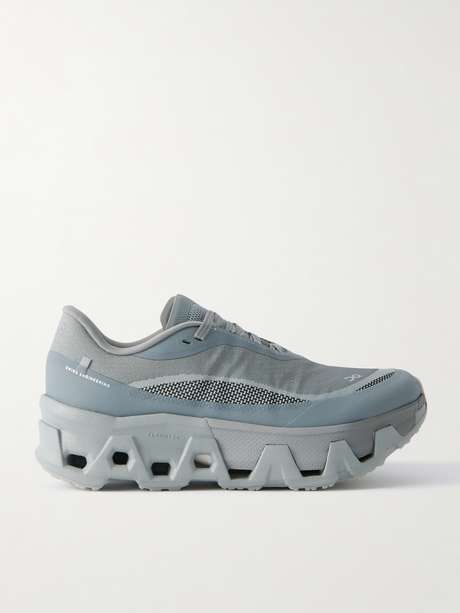 On's 'Cloudmonster Hyper' sneakers are part of a futuristic collab with POST ARCHIVE FACTION. Made from breathable mesh, they feature CloudTec® midsoles for responsive cushioning and Helion™ HF superfoam to absorb impact. A perforated sockliner adds another layer of comfort.