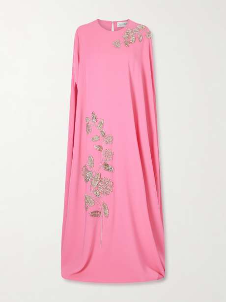 OSCAR DE LA RENTA Cape-effect embellished silk-blend gown