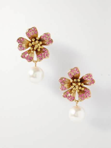 OSCAR DE LA RENTA Dotted Petals gold-tone, crystal and faux pearl earrings