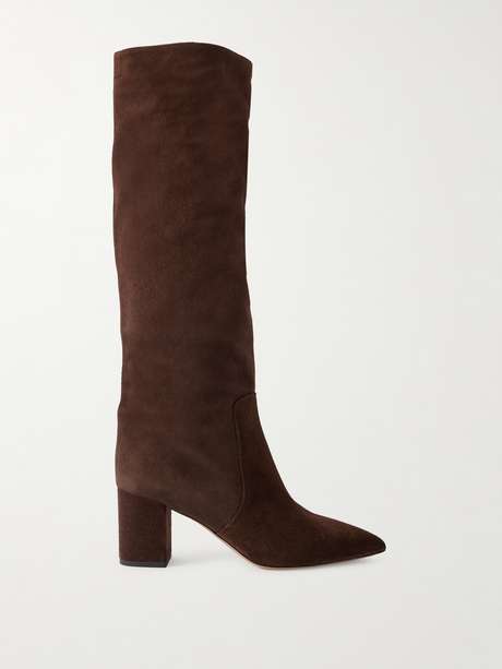 Paris Texas' 'Anja' knee boots are designed in a wide, slightly slouchy shape contrasted by a sleek pointed toe. They're made from velvety suede and rest on 70mm block heels for sturdy lift. Wear yours with the season's longline shorts or peeking out from midi skirts.