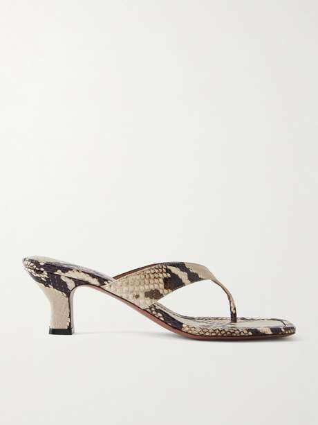 Paris Texas, founded in Milan, brings clarity to modern footwear. The 'Portofino' mule is crafted in printed python leather with a square-toe silhouette, pared back to a thong strap and subtly flared heel. Graphic and precise, it asserts itself through line and texture alone.