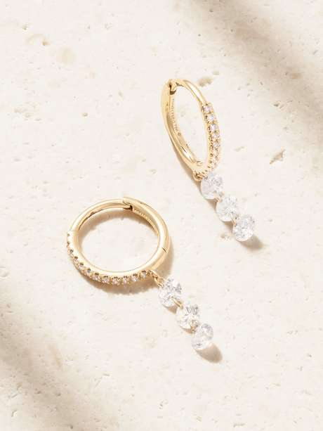 Persée's timeless earrings are strung with three light-catching diamonds – the minimal settings mean they are especially captivating. They're made from 18-karat gold and have dainty hoops, so they'll look great worn solo or stacked alongside other styles.