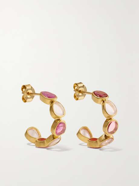 PIPPA SMALL 18-karat gold, quartz and tourmaline hoop earrings