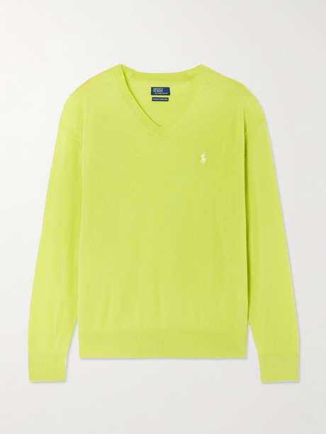 Polo Ralph Lauren's logo-embroidered sweater is guaranteed to bring joy and color to your wardrobe. It's knitted from the label's shade of 'Peridot Green' in slightly sheer merino wool and has a ribbed V-neckline.