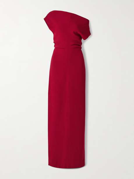 Proenza Schouler's 'Rosina' dress has a draped neckline that bares one shoulder. It's cut from red crepe and nips in gently at the waist before falling to a floor-pooling hem.