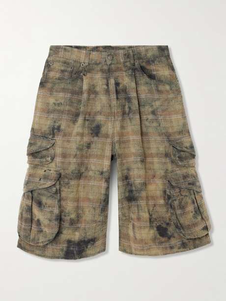 R13 Checked distressed cotton-flannel cargo shorts