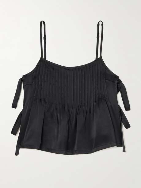 R13 Cropped tie-detailed pintucked silk-charmeuse camisole