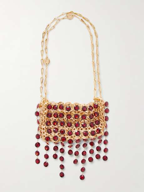 A work of fashion legend, Rabanne's chainmail bags have been iconic since their '60s debut. This gold-tone version is set on chain shoulder straps and draped with light-catching red crystals. It fits your phone, cardholder and a lipstick for touch-ups.