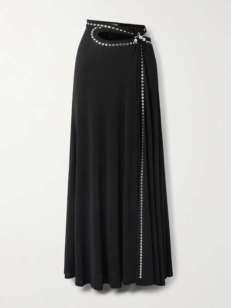 You couldn't not make an impact in this striking skirt by Rabanne. Made from jersey, it has a cutout, gathered waist embellished with silver-tone hardware and is traced with tonal eyelets down to the hem. Pair yours with a cropped blouse or tank to keep the detailing in focus.