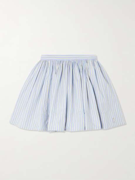 Rabanne brings a playful, feminine take on warm-weather dressing with this mini skirt. Cut from crisp cotton-poplin, it's pleated along the waist to volume and movement, while the vertical stripes lend a fresh, graphic finish. Style yours with a simple tank and sandals.