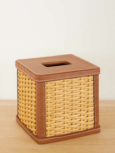 Ralph Lauren Home extends its ‘Bailey’ collection to everyday essentials with a refined, tactile finish. This tissue box is crafted in a woven design, shaped with clean lines and finished with stitches at the leather trims that add subtle structure and polish.