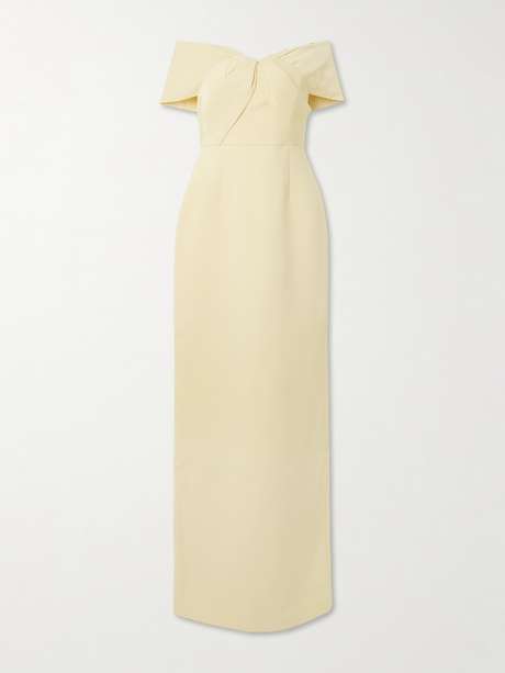 Rebecca Vallance's 'Aubriella' gown comes in a gorgeous shade of butter-yellow – it's this season's must-have shade, and also has a really timeless appeal. Made from soft crepe and satin, it's folded and gathered at the front and has an elegant off-the-shoulder neckline. Lift the maxi hem with heels.