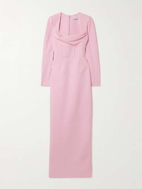 Rebecca Vallance's 'Nemy' gown is the embodiment of elegance. Made from crepe, it has a sweeping cowl neckline, corset-inspired boned bodice and a column skirt. Wear yours with pumps and a box clutch.