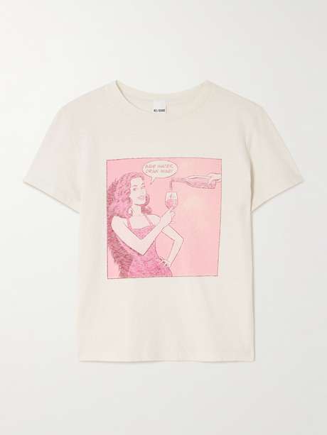 RE/DONE's retro graphic tees are sure to make you smile – this one features a 'save water, drink wine' sketch. Cut from soft cotton-jersey blended with recycled fibers, it has a relaxed shape and is designed to look washed-out. Style yours with the brand's signature denim.