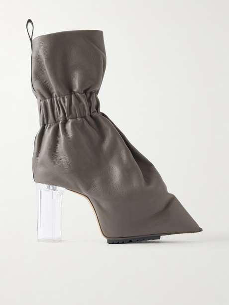 The subversive silhouette of these boots makes the mind behind them unmistakable — Rick Owens. Crafted from textured leather, they’re shaped with a pointed toe and set on clear heels. Style them with an oversized coat.