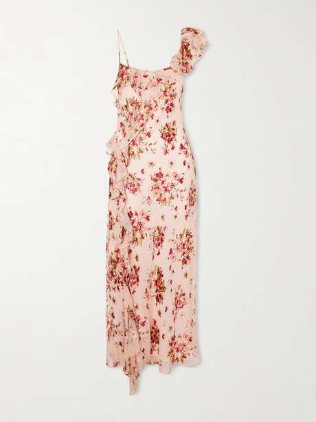 Romantic '90s styles inspire RIXO's 'Ester' dress. Cut on the bias, it's made from chiffon with devoré-velvet flowers and trimmed with ruffles that flutter as you move. Style yours with barely-there sandals and a mini bag.