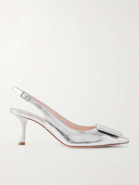 Roger Vivier gives its 'Viv In The City' slingback pumps a glamorous, modern feel. They're made from metallic textured-leather topped with a coordinating version of the label's iconic buckle. They'll liven up tailoring and add drama to simple dresses.