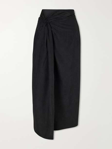 RÓHE's skirt is crafted from crinkled satin, lending it a subtle textured feel, and is gathered at the waist with a knot. Style it with kitten heels.