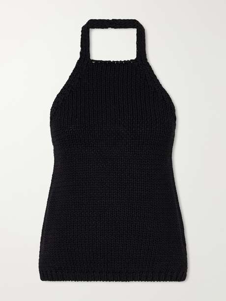 RÓHE’s top is a staple you’ll keep coming back to in warmer months. Knitted from cotton with an airy, open gauge, it’s framed by a relaxed halter neckline.