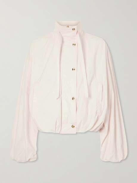 The soft blush shade gives RÙADH’s 'The Aisla' jacket a delicate presence. Made from cotton poplin, it has elasticated cuffs that create a puffed-sleeve effect and is finished with gold-tone hardware.