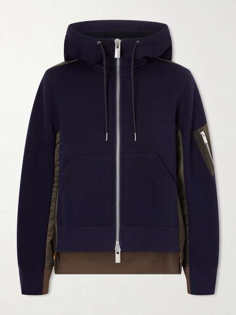 SACAI Sponge Sweat shell-paneled cotton-blend jersey zip-up hoodie