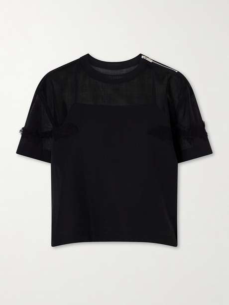 SACAI Lace-trimmed organza T-shirt