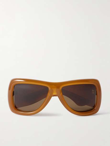 SAINT LAURENT Eyewear's 'Howl' sunglasses are a fusion of retro and futuristic styles. Debuted during the '80s-inspired Spring '26 runway show, they have oversized pillowy D-frames with gold-tone logos on the wide arms and tonal lenses.