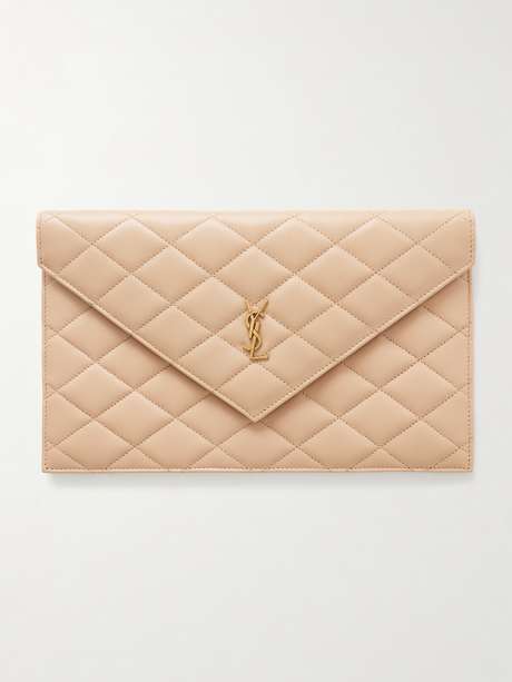 SAINT LAURENT's accessories never date. This matelassé clutch has been made in Italy from leather and has the iconic 'YSL' plaque in gold-tone hardware. We love its clean, chic lines.