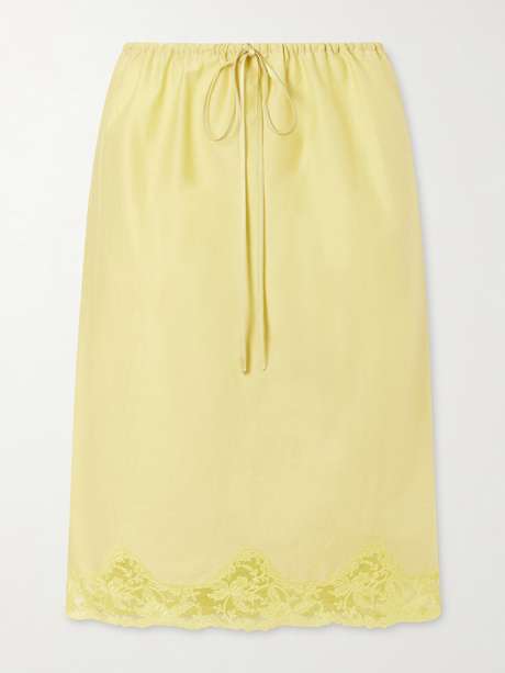 Rendered in a soft yellow hue, SAINT LAURENT's midi skirt nods to the house’s masterful use of color. Made from lightweight poplin, it’s shaped with a drawstring waist and finished with delicate tonal lace tracing the hem.