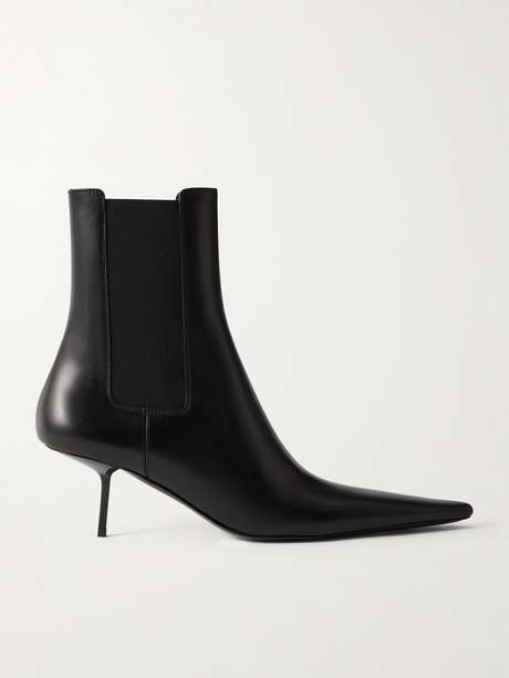 SAINT LAURENT's 'Victoire' ankle boots combine the house's sharp lines with an understated edge. They're crafted from smooth leather with exaggerated pointed toes and rest atop pin-thin heels.