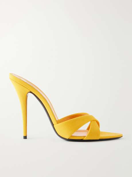 SAINT LAURENT’s ‘Kirat’ sandals add a bold pop of color to the house’s signature sleek designs. Crafted from cady in a vibrant yellow hue, they have crossed straps that frame the foot and rest on fluted 110mm heels.