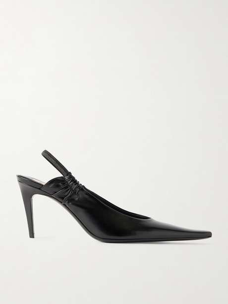 The elongated, squared-off toes on SAINT LAURENT's 'Anne Marie' pumps create the illusion of longer legs. Set on angled 75mm heels, they're made from black glossed-leather and have gathered slingback straps.