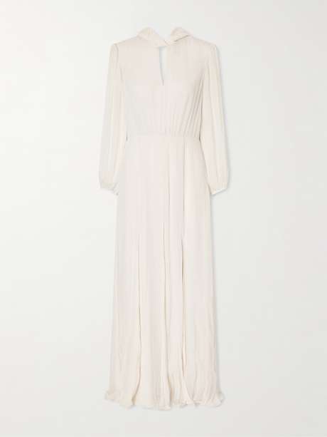 EXCLUSIVE AT NET-A-PORTER. Saloni's 'Jaclyn' gown captures the brand's romantic sensibility through a fluid lens. Cut from silk-crepon, the floor-length silhouette has a softly gathered bodice, sheer sleeves, and a gently flared skirt, while floral motifs add depth and movement.