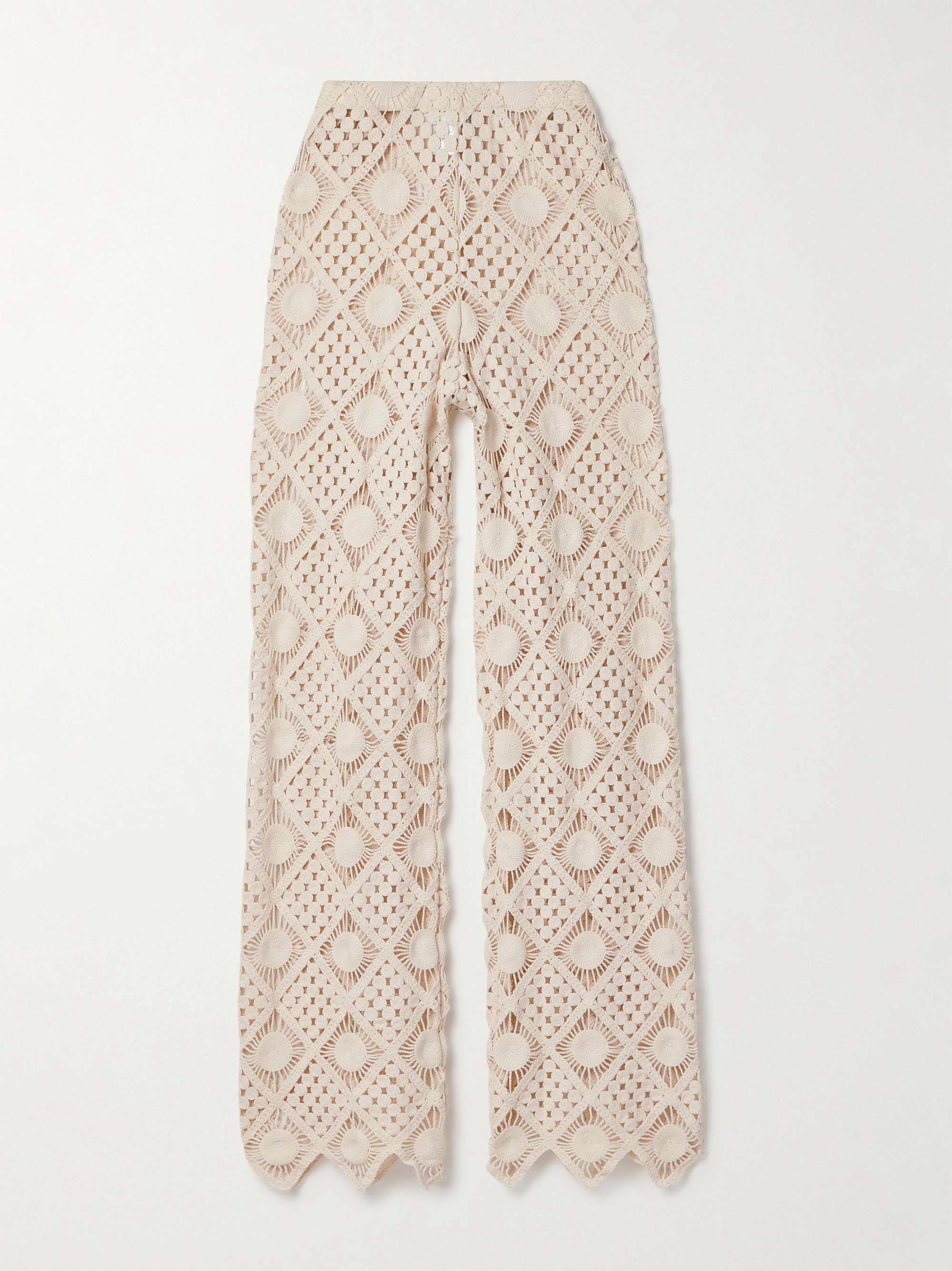 SARA CRISTINA Playa crocheted cotton straight-leg pants