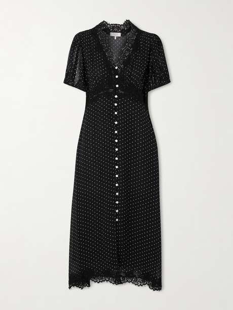 SEA Melody lace-trimmed polka-dot crepe de chine midi dress