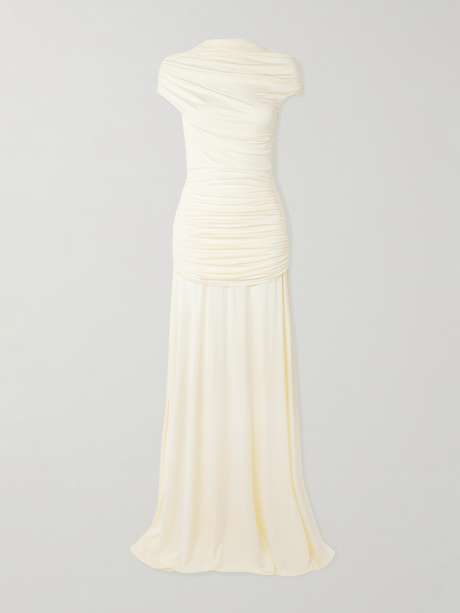 There's a fluidity and ease to Self-Portrait's maxi dress. Made from stretch-jersey, it's softly gathered through the bodice and hips, creating a dropped waist before falling to a floor-sweeping skirt. The sash ties elegantly frame the open back.