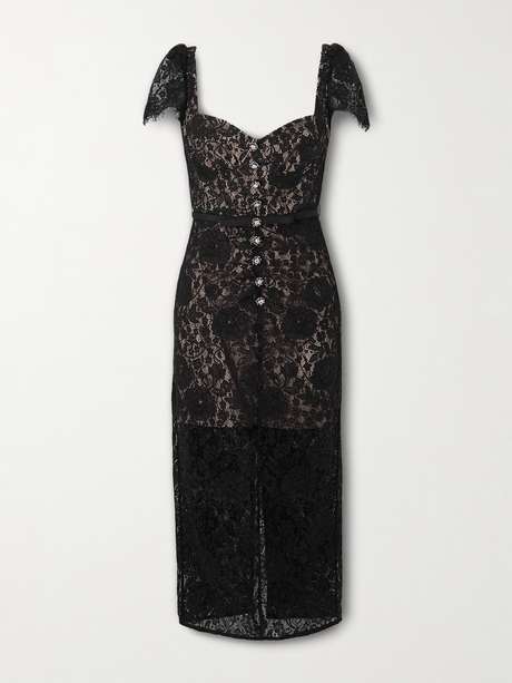 SELF-PORTRAIT Belted embellished cotton-blend lace midi dress