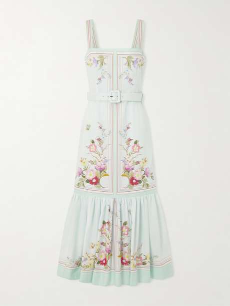 Self-Portrait’s dress channels the ease of sun-drenched days. Patterned with a scarf-inspired floral print, it’s cut from airy cotton and linen-blend organza in a relaxed shape, defined by a coordinating belt at the waist before gathering into a softly flared midi hem.
