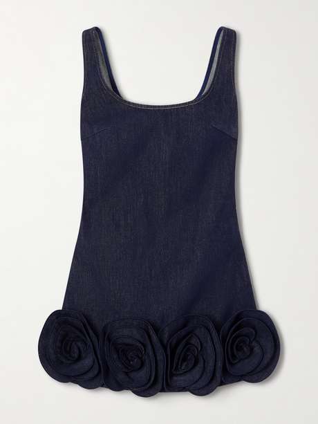 Made from indigo denim, Self-Portrait’s dress has a classic scoop neckline and a fitted bodice. A flourish of dimensional roses traces the hem. Wear yours with ballet flats or mules.