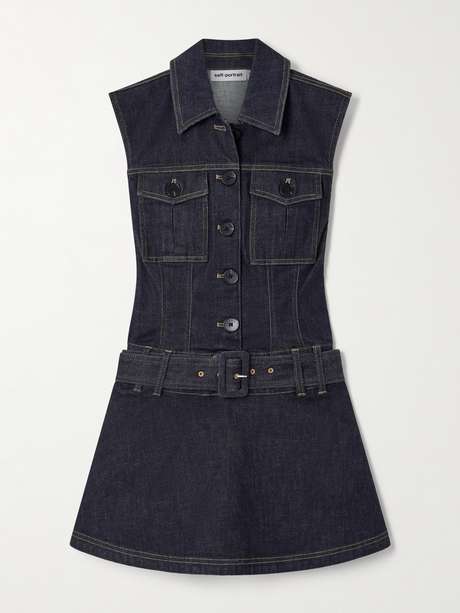 Self-Portrait's mini dress calls to mind Y2K styles. Made from dark-wash denim, it's designed with a belted drop-waist that creates the illusion of separates and flares out to an A-line skirt.