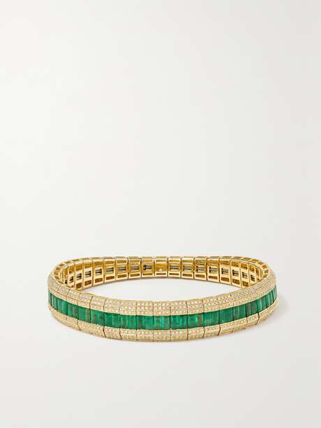 SHAY 18-karat gold, emerald and diamond stretch bracelet