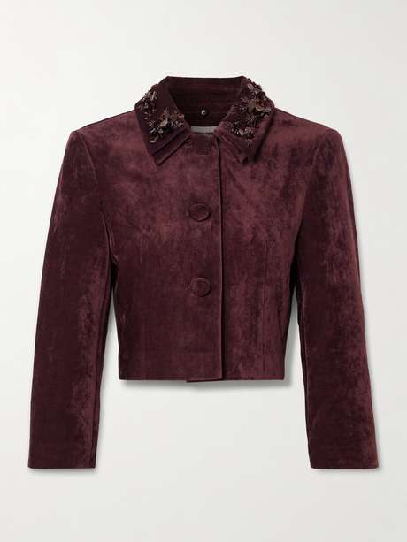 SHUSHU/TONG's jacket has been made in Japan from velvet in a ladylike shape that feels modern and fresh. It's cut for a boxy, cropped fit and has a layered collar embellished with sequined flowers. Wear yours with the matching skirt.