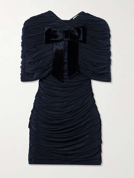 SHUSHU/TONG Bow-embellished velvet-trimmed gathered jersey mini dress