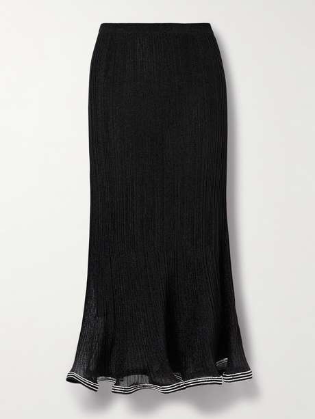 SIMKHAI Brighton crystal-embellished metallic ribbed-knit maxi skirt