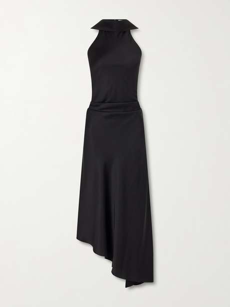 SIMKHAI Monica asymmetric tie-detailed satin halterneck midi dress