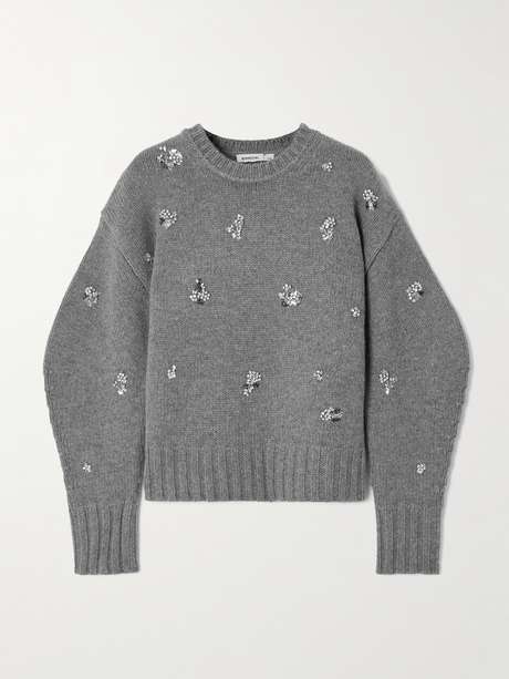 Simkhai's 'Coraline' sweater was first seen on the label's Fall '25 runway – it was cinched by a slim leather belt and styled with the matching 'Georgie' shorts. Made from a sumptuous wool and cashmere-blend, it has a relaxed shape and is embellished with sparkling bead and crystal flowers.