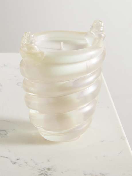 Sophie Bille Brahe's 'Nuage Madison' candle has top notes of Clove and Pink Pepper, a heart of Cedar and Thyme and base notes of Amber, White Musk and Sandalwood. Vanilla runs throughout the fragrance, creating a welcoming feeling of home. The pearlescent, twisted vessel is inspired by clouds and makes a beautiful piece of decoration after the wax has burnt through.